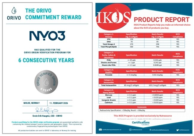 自创立以来,NYO3始终坚持全球统一原料、统一标准、统一品质,甄选全球头部供应链合作伙伴——核心原料均源自挪威阿克生物、意大利意迪那、法国罗赛洛等国际知名供应商。产品通过ORIVO、IKOS、Eurofins等多家国际权威机构检测,每一批次产品均可实现全程溯源。