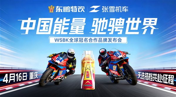 快科技4月16日消息,东鹏特饮官方今日发文宣布,今天,东鹏特饮正式成为@张雪机车WSBK全球冠名合作品牌!
