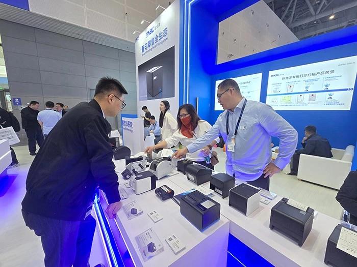 作为专用打印扫描领域的深耕者,新北洋以“智印零售全生态”为主题重磅亮相本届展会。现场特设核心展示区,集中展出了从自研关键件、打印机芯、嵌入式打印单元到整机的全产业链设备,凭借完整的一体化优势,充分彰显了公司三十年深耕的深厚技术底蕴与强悍制造实力,成为全场瞩目焦点。