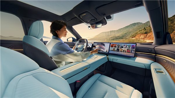 配备10.25英寸全液晶仪表与双15英寸2.4K连屏,搭载高通骁龙8295P芯片,AI智能伙伴融合智谱AI与文心大模型能力,并搭配无级可调环绕隐藏式氛围灯。