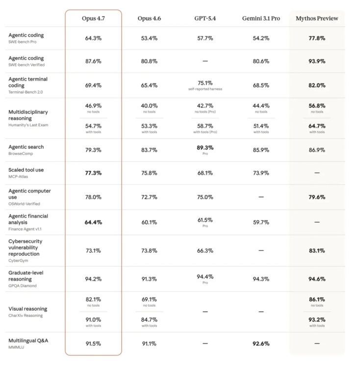 而就在刚刚,万众期待的 Claude Opus 4.7 也正式发布,依旧是熟悉的配方,熟悉的高分选手。