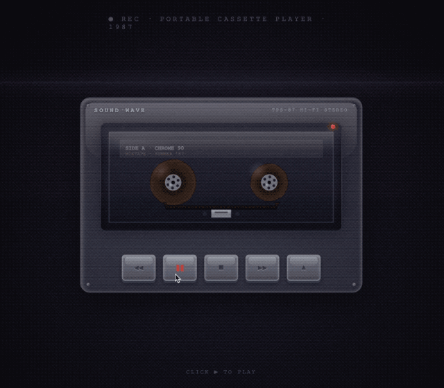 第三个场景是做一个复古磁带随身听,带有录像带那种老旧的噪点效果。磁带转动的细节也是有的。