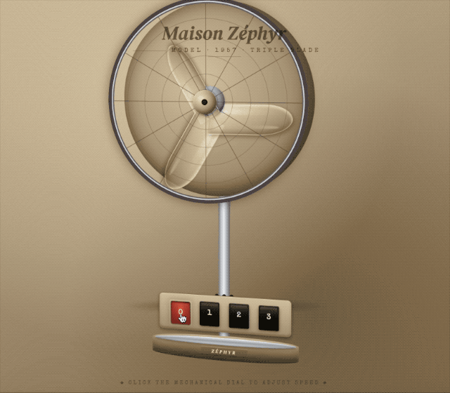 第二个场景是只用 CSS,不用 JavaScript 做一个老式电风扇。 面对这个限制严格的题目,一些模型会悄悄违规使用 JS,但 4.7 遵守了规则。它用纯 CSS 做出了风扇的立体结构,低中高三档过渡流畅,底座透视和阴影的处理也真有一点实物感,它在规则允许的范围内找到了很好的解决办法。