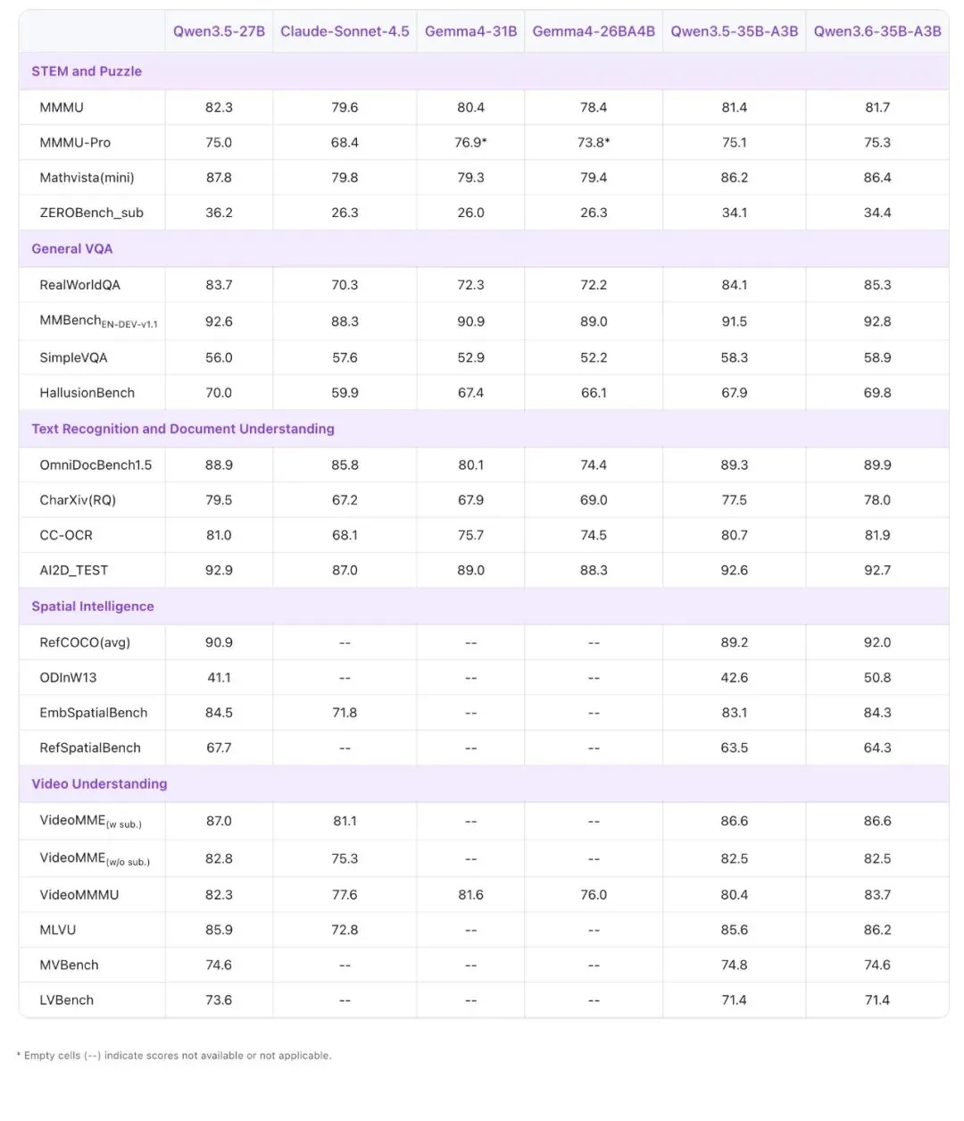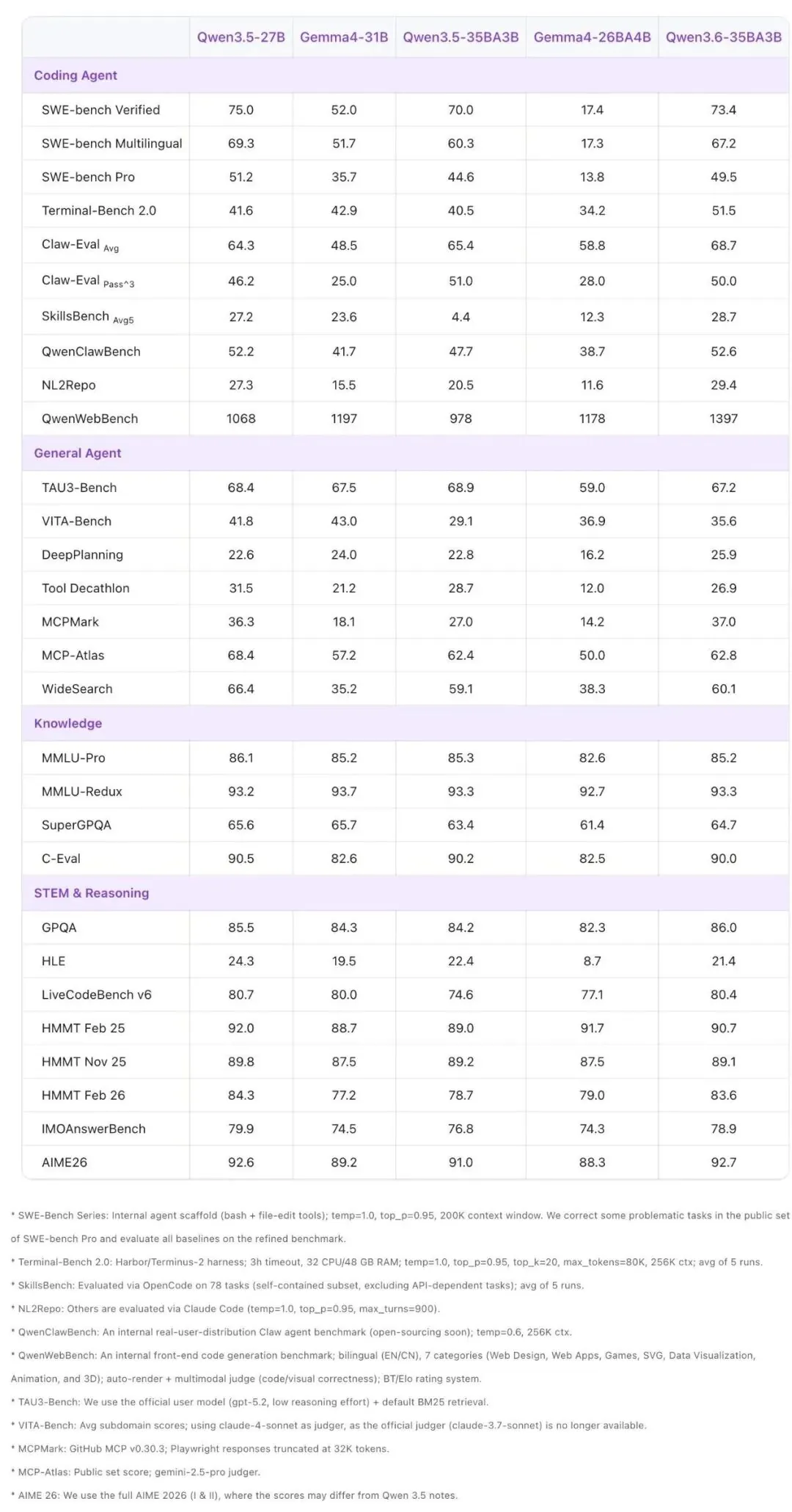 下文将全面展示 Qwen3.6-35B-A3B 与同规模模型在各类任务和模态上的评测对比结果。