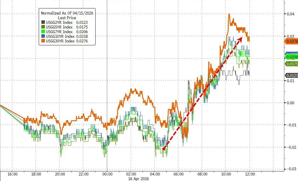 两年期美债收益率涨1.23个基点,报3.7737%;30年期美债收益率涨3.07个基点,报4.9285%。