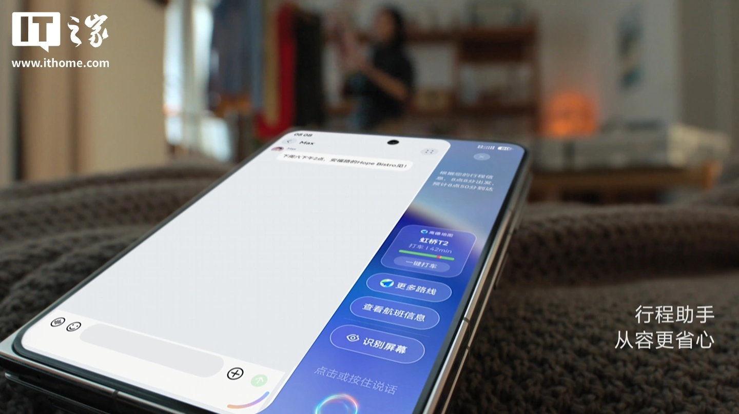 行程助手:可智能识别当前 App 显示的信息,提供路线规划、预计行程所需时间、查询航班信息、一键打车等功能;