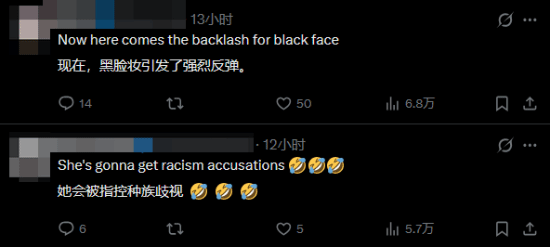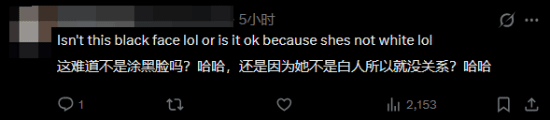 考虑到中外的文化语境有着显著区别,因此在不同视角下,这种行为能否构成“Blackface”显然存在争议,但这种文化背景上的差异以及沟通的不透明,正让此事在海外社交平台上持续发酵。