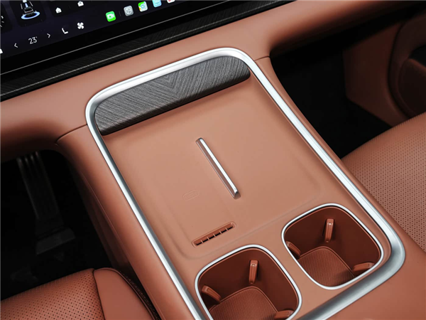 像 D19 前排的无线充电位置只有一个,内饰也没有说哪哪都是真皮,仿皮的材质还是会有。座椅也不是整张都是半苯胺的,主要是在我们日常会接触到的地方用上相应的材料。