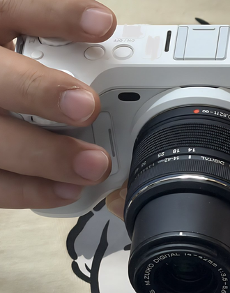 谍照里这台机身整体是白色调,造型简约干净,前后双拨轮、机顶热靴,远看像是一台介于复古旁轴和现代小型无反之间的相机。试装的镜头是奥林巴斯 14-42mm F3.5-5.6,也就是说 Z-ONE 一旦上市,就能直接复用整条 M43 阵营沉淀了二十多年的镜头资源,对早期用户而言基本不存在“等镜头”的焦虑。