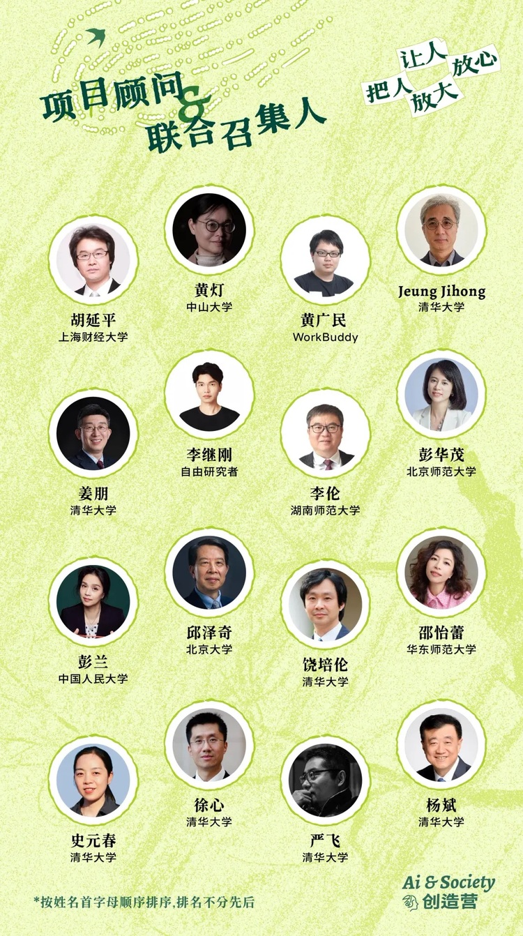 创造营汇聚了来自计算机科学、心理学、社会学、传播学、经济学、哲学、人因工程学等多个领域的专家学者担任顾问与联合召集人。