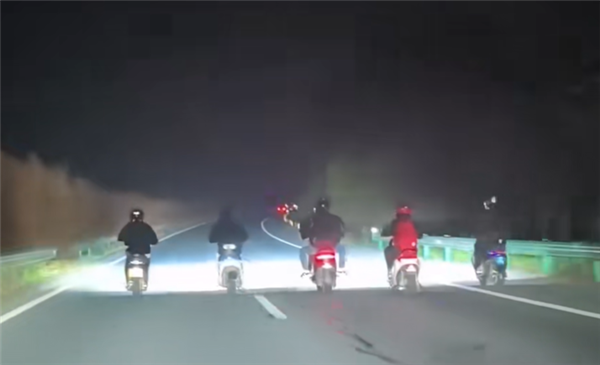 快科技4月8日消息,据报道,近日晚间,安徽怀宁237省道怀宁段发生一起交通违法事件。5名青年骑手驾驶改装电动摩托车,在夜间省道上并排齐头行驶,完全占据了整条机动车道,导致后方数十辆汽车被堵,无法正常通行。现场画面显示,夜色中5辆摩托车横向并排,占满双向车道,以缓慢速度向前行驶,将公共道路变为“专属通道”。后方车辆被完全堵死,只能跟随缓行,鸣笛示意未起到作用。不久之后,驶来一辆警车,警灯闪烁,5名骑