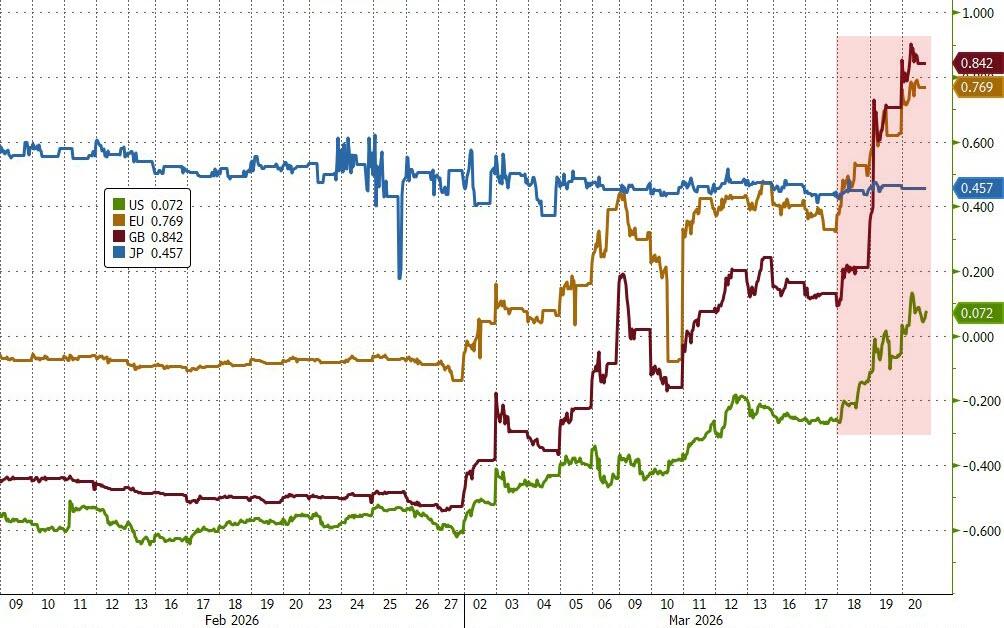 高盛交易员警告,在伊朗袭击全球最大LNG设施的冲击下,能源价格已成为驱动所有宏观资产走势的核心变量,而美联储、欧洲央行与英国央行在本周的政策会议上不仅未能稳定市场,反而以鹰派立场强化了前端利率对能源价格的高敏感性。高盛宏观交易员Cosimo Codacci-Pisanelli与Rikin Shah在报告中表示,伊朗对卡塔尔Ras Laffan液化天然气设施的袭击造成未来3至5年内约17%的供应中断