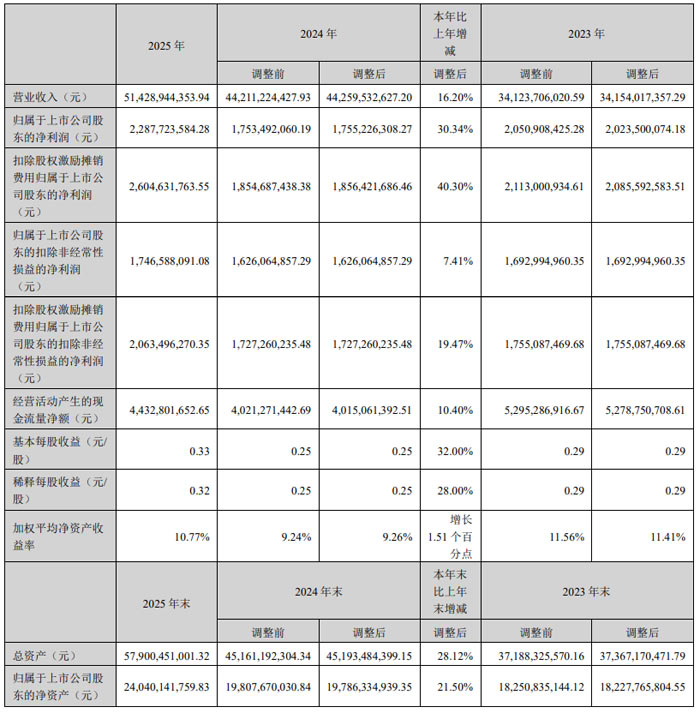 登录新浪财经APP 搜索【信披】查看更多考评等级 2026 年 3 月,广东领益智造股份有限公司(股票简称:领益智造,股票代码:002600)发布 2025 年年度报告。报告显示,公司全年实现营业收入 514.29 亿元,同比增长 16.20%;归属于上市公司股东的净利润 22.88 亿元,同比增长 30.34%;经营性现金净流入 44.33 亿元,同比增长 10.40%,三大核心财务指标稳健增长