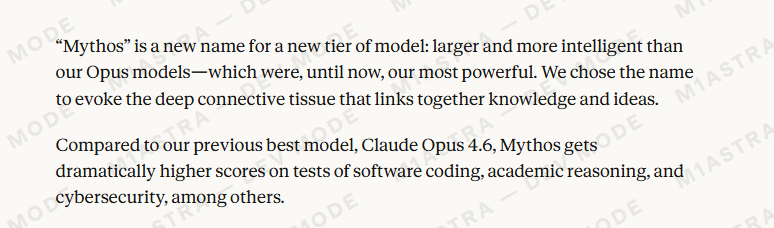 感谢IT之家网友 GreatMOLA 的线索投递! IT之家 3 月 28 日消息,科技媒体 decrypt 昨日(3 月 27 日)发布博文,报道称 AI 企业 Anthropic 的未公开博客草稿在网上泄露,意外曝光了其正在研发的新 AI 模型 Claude Mythos。Anthropic 官方发言人随后向媒体证实了该模型的存在,并将其定义为公司迄今为止打造的“最强模型”。内部文件显示,My