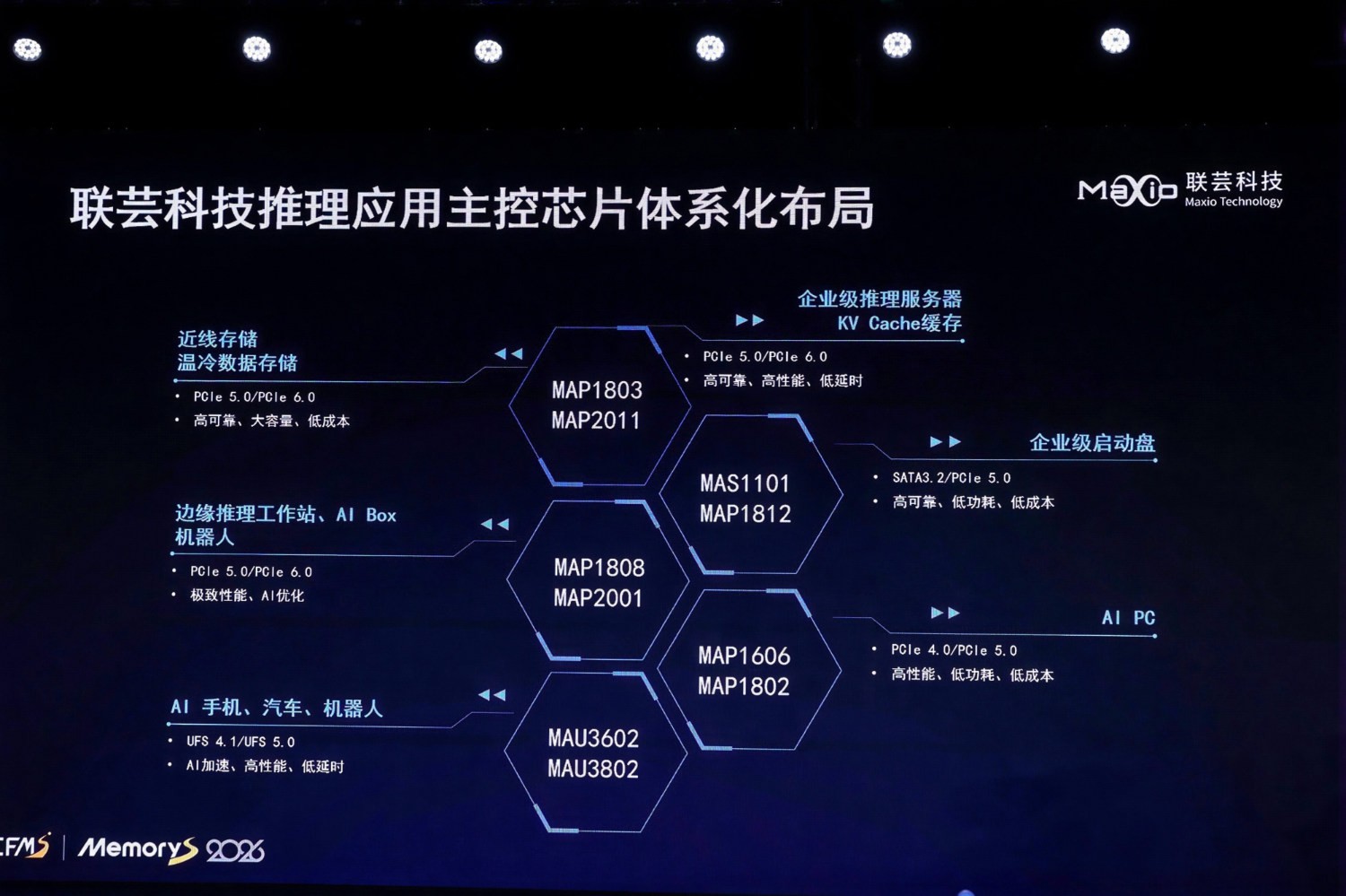 IT之家 4 月 13 日消息,联芸 Maxio 在上月末举行的 CFMS | MemoryS 2026 上公布了其存储开发路线图,其中提到了支持 PCIe Gen6 的消费级 / 客户端 SSD 主控 MAP2001。IT之家注意到,这很可能是首个出现在大众视野中的同定位产品型号。MAP2001 采用带独立 DRAM 缓存方案,目标实现 28GB/s 的顺序读取速率。其追求极致性能,全方位面向