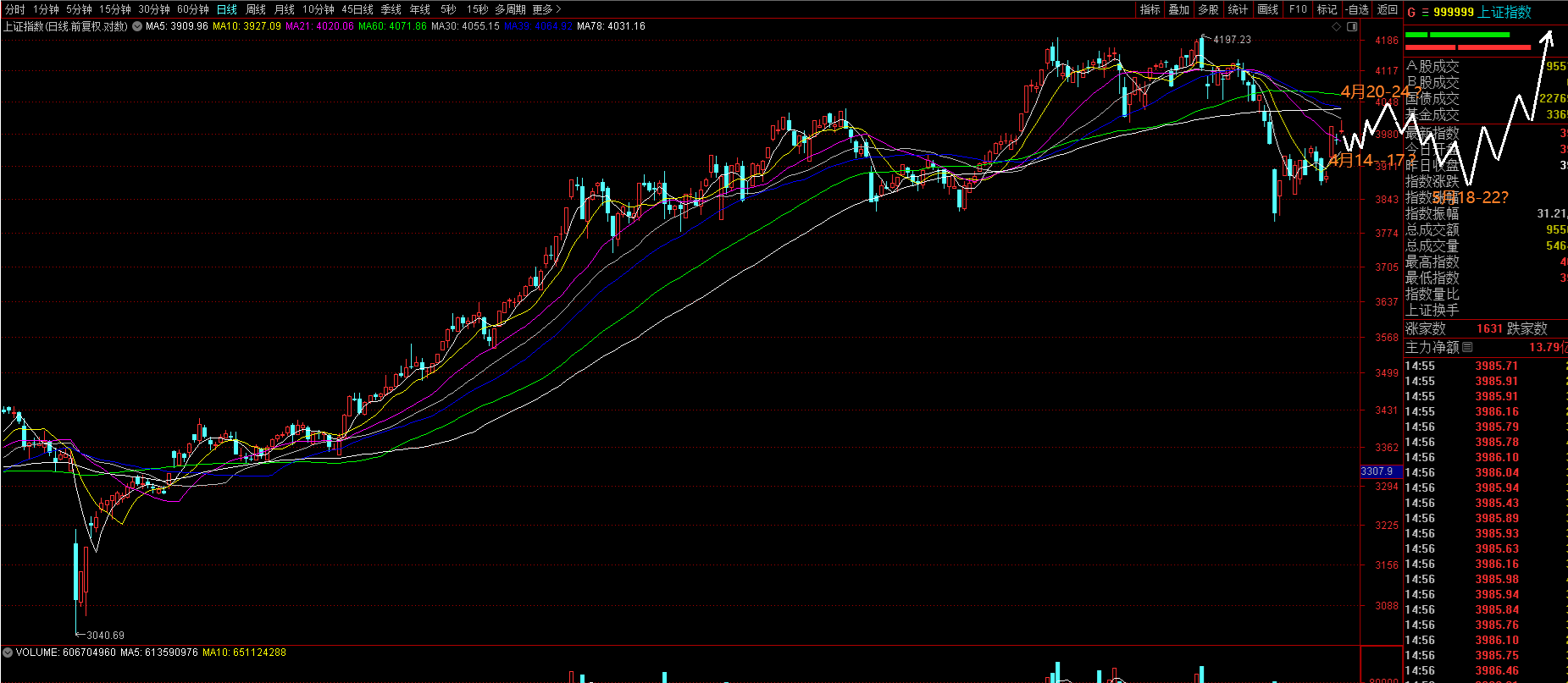 2026年04月13日 08:32:21一,4月6日以来预测回顾与检验:(一)4月6日文章预测回顾与检验:1,“(1)3月23日低点以后的筑底将在4月7-10日当周结束,这个时间的低点底部将迎来明显的升势,今后的回调、巩固不会低于该周低点,从周线角度看,4月7-10日低点与3月23日低点将构成重大转势双底,本人认为该预测胜算概率在99%以上。”2,“(2)4月7--10日当周日线拐点可能在4月7或