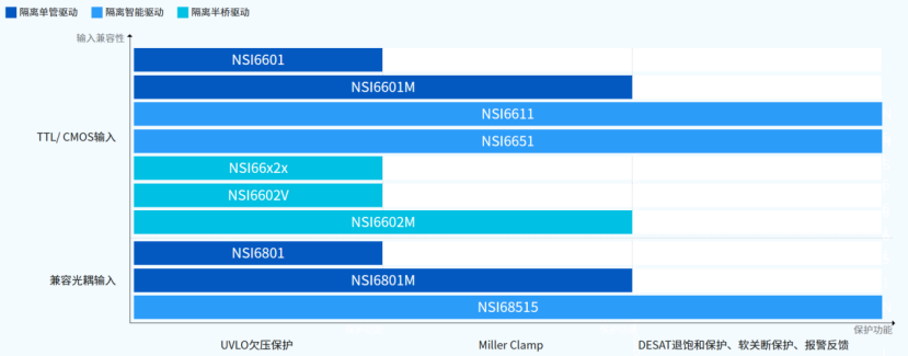 简介在5G通信、数据中心、工业电源、充电桩和车载电源等应用中,小型化、轻量化要求功率器件具备更高的开关频率、更小的死区时间,而系统复杂化与高压应用则对隔离器件的可靠性提出了更高要求。对此,纳芯微电子提供低传播延时、高可靠性、高集成度、基础型/增强型隔离的隔离驱动芯片解决方案,特别适合当前开关电源设计智能化、小型化的趋势。技术优势高隔离耐压5.7kVRMS 隔离耐压,爬电距离 > 8mm,满足增强隔