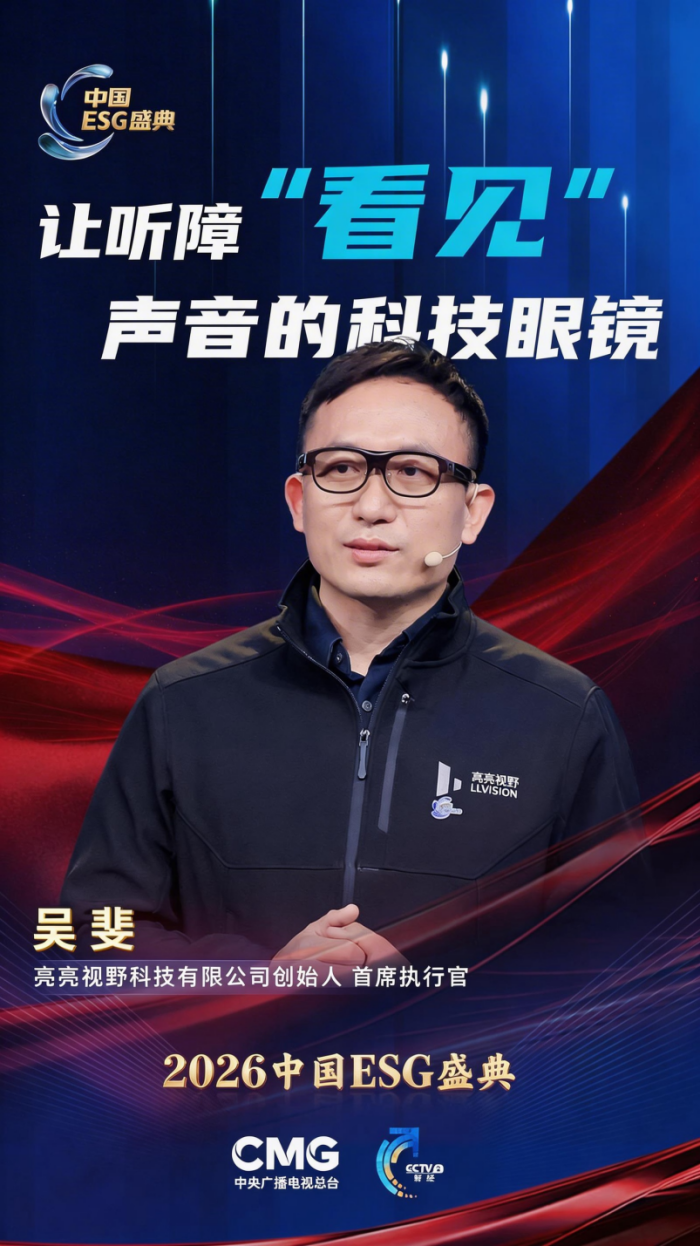 【天极网手机频道】4月11日,由中央广播电视总台主办的《2026中国ESG盛典》在央视财经频道正式播出。在“根系·时代之问”篇章中,亮亮视野作为三家AI新锐企业之一登台,创始人兼CEO吴斐围绕“AI浪潮下科技企业的责任与使命”,分享了公司在隐私保护与无障碍沟通方面的ESG实践。 吴斐在现场描绘了一个虚实融合的未来场景:用户不再需要频繁掏出手机、打开应用、输入指令,智能眼镜可以通过全域感知理解用户意