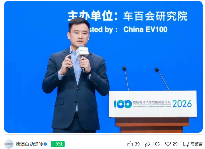 IT之家 4 月 11 日消息,智能电动汽车发展高层论坛(2026)于 4 月 11 日至 12 日在北京国家会议中心二期举行,主题为“推进新能源汽车智能化、绿色化、融合化、国际化发展”。滴滴联合创始人、滴滴自动驾驶公司 CEO 张博在此次论坛上发表演讲。他表示,滴滴自动驾驶经过十年发展和技术积累,在 AI 核心技术、车规级硬件体系和海量真实场景三方面实现了关键突破与深度融合。据介绍,滴滴目前已实