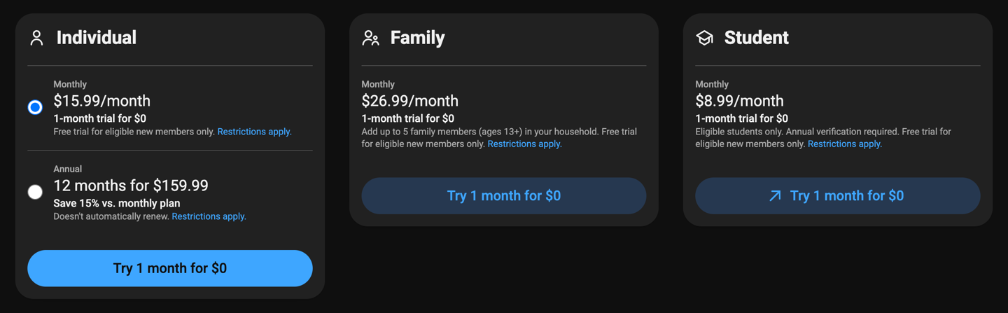 IT之家 4 月 11 日消息,谷歌正在对 YouTube Premium 美国订阅计划实施新一轮涨价,最高幅度达到每月 4 美元。新价格即日起对新订阅用户生效,老用户将从 2026 年 6 月的账单周期开始生效。调整后,美区 YouTube Premium 各档位价格如下:此次涨价紧随上个月 Netflix 和亚马逊 Prime Video 的调价步伐。YouTube Premium 上一轮涨价