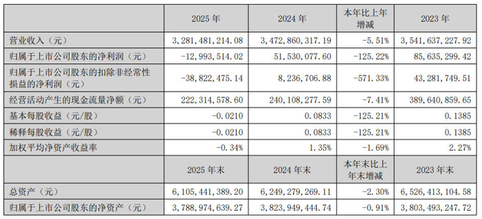 2026 年 4 月,佛山市国星光电股份有限公司(股票简称:国星光电,股票代码:002449)正式披露 2025 年年度报告。报告全面呈现了公司过去一年的经营业绩、业务布局、核心竞争力及未来发展规划,所有数据均严格基于公司年度经营实际与审计结果。经营业绩概览 2025 年,受下游传统领域市场需求减弱、原材料价格上涨等多重因素影响,公司经营业绩呈现阶段性调整。全年实现营业收入 32.81 亿元,同比
