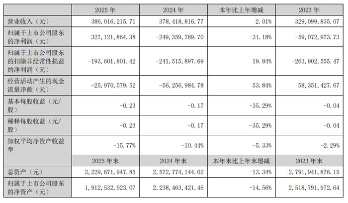 2026 年 4 月,东莞勤上光电股份有限公司(股票简称:勤上股份,股票代码:002638)正式披露 2025 年年度报告。报告期内,公司全面聚焦半导体照明主业,持续深耕智慧照明、户外照明、户外庭院用品及景观照明领域,全年实现营业收入3.86 亿元,同比增长2.01%。经营业绩概况 2025 年,勤上股份实现营业收入3.86 亿元,同比增长2.01%;归属于上市公司股东的净利润-3.27 亿元,同