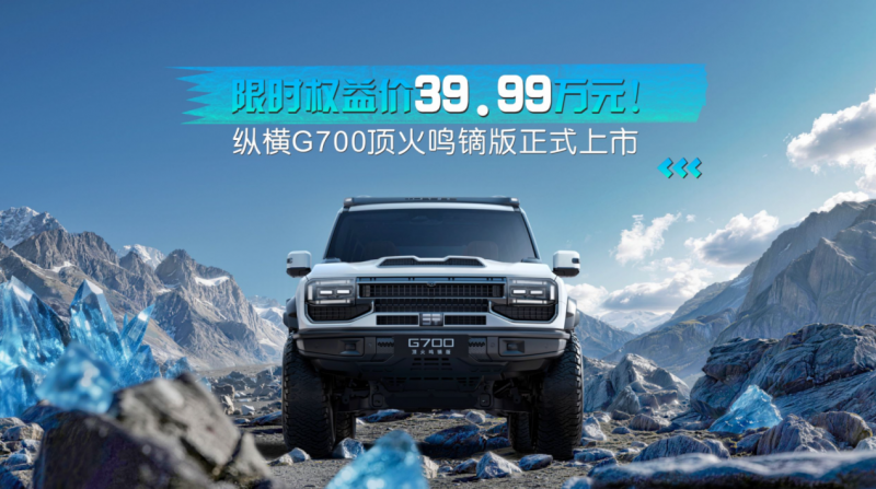 当原厂顶改成为豪华越野新趋势,纵横G700顶火鸣镝版以深度定制化配置与全域硬核实力,为高端越野玩家带来前所未有的出行体验。3月31日,纵横G700顶火鸣镝版正式上市,官方指导价42.49万元,限时权益价39.99万元,作为纵横品牌与高端改装机构顶火的重磅力作,顶火鸣镝版车型从外观设计、底盘架构、动力性能到智能座舱、安全防护,每一处配置都历经专业打磨,将野性与豪华、性能与品质完美融合,树立中国原厂改