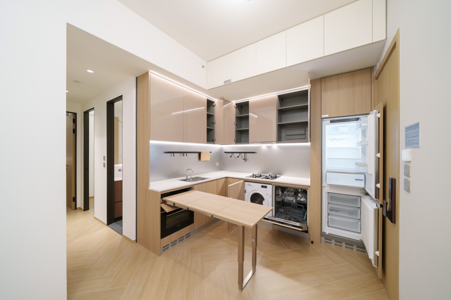 开放式厨房连折叠餐桌 — 空间灵活运用的典范