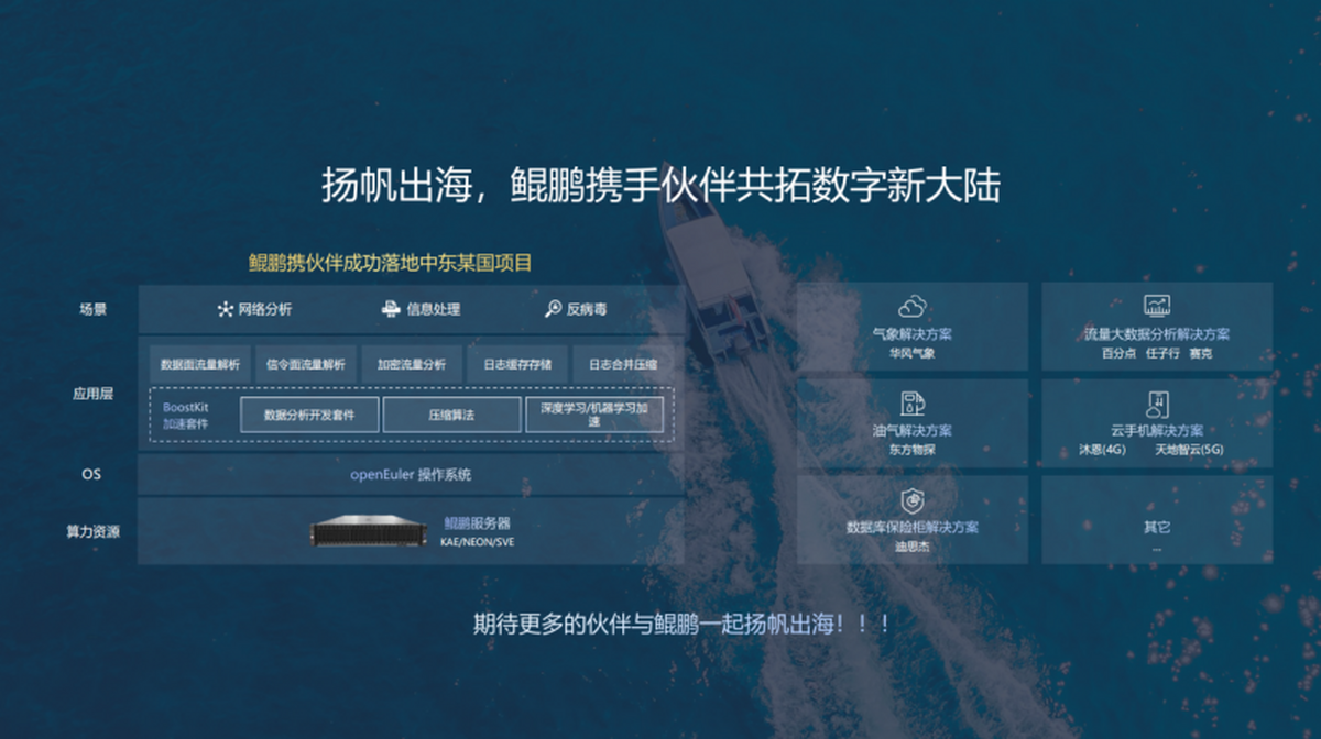 在海外市场,鲲鹏同样步伐坚定,基于鲲鹏的项目已在中东、非洲成功落地,在气象、油气、数据库等领域的海外合作也在扎实推进,中国算力方案正借助鲲鹏生态走向全球。