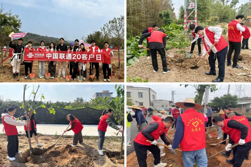 在珠海、湛江、韶关、潮州等地也分别联合属地单位开展义务植树、共建“同心林”等活动,志愿者与客户并肩协作,为乡村振兴注入绿色动能,展现青年力量与社会责任的高度融合,并获得群众点赞:“年轻人有活力,联通的公益行动做得实实在在!”