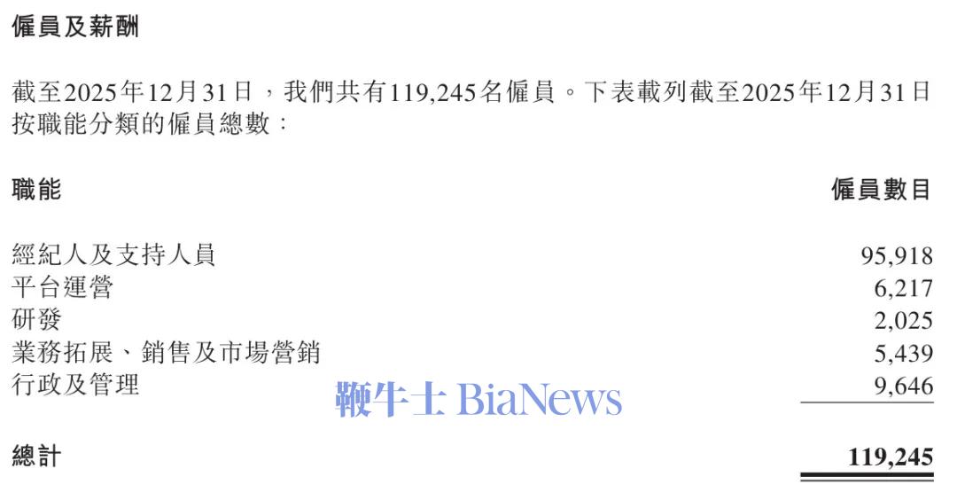 前几天贝壳财报发布后,笔者第一时间给大家盘点过贝壳职场信息。数据显示,贝壳雇员规模在2025年经历大幅缩减:截至2024年底为135,072人,至2025年6月30日降至131,881人,而到2025年12月31日已进一步减少至119,245人。这意味着在过去一年,贝壳净减少员工15,827人。(互联网坊间八卦)