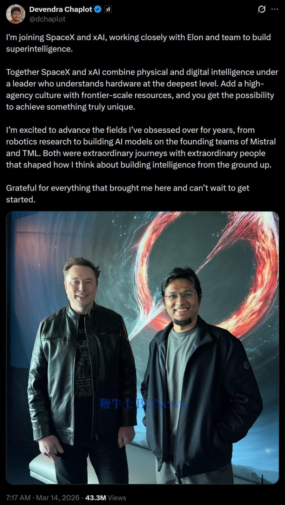 他是xAI除马斯克以外,最后一位留守的联合创始人。
