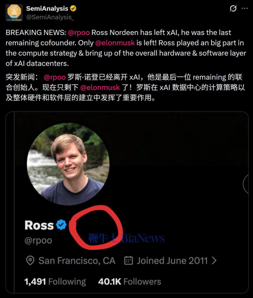 3月28日,Ross Nordeen悄悄摘掉了自己在X平台上的xAI员工认证标识。