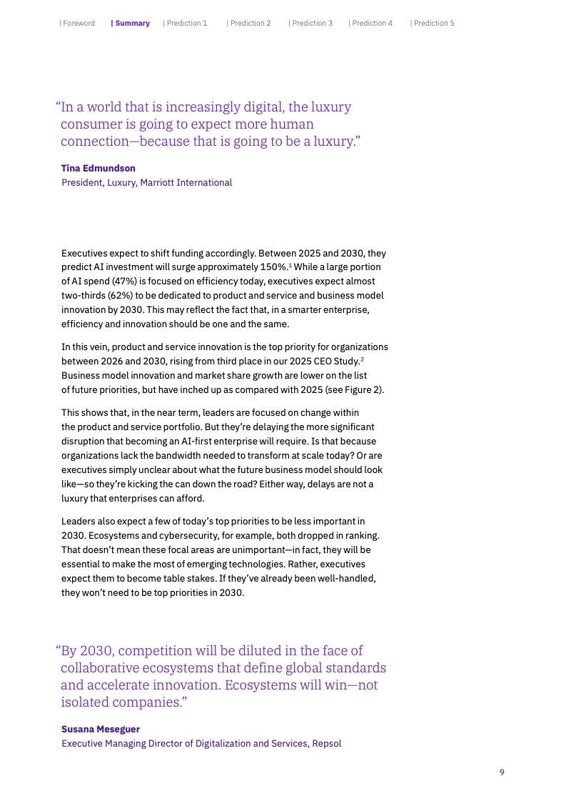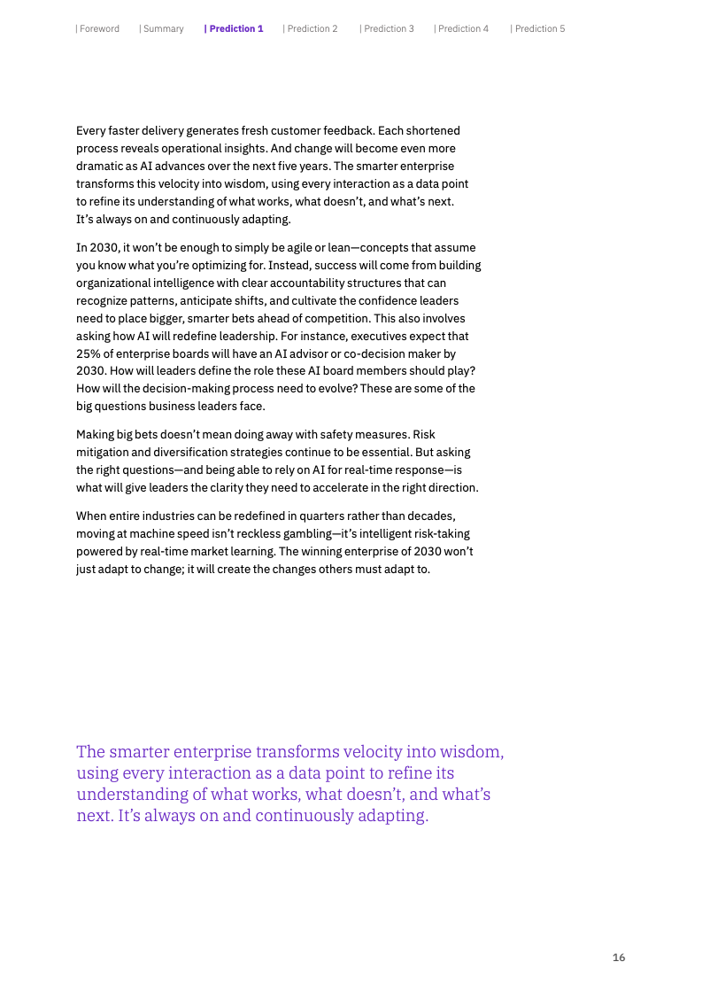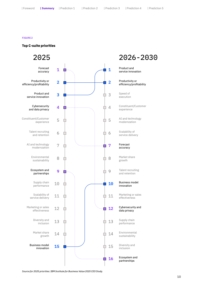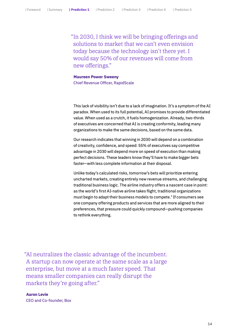 综合来看,2030年的领先企业将呈现出清晰趋势:以AI驱动的生产率释放为资本来源,通过定制化技术体系不断试探新市场,并以高速决策和动态组织应对不确定性。真正的分水岭不在于是否采用AI,而在于企业能否将技术、数据与自身独特业务逻辑持续编码进组织运作之中。未来十年,创新将不再是阶段性项目,而是一种被写入企业“操作系统”的常态能力。