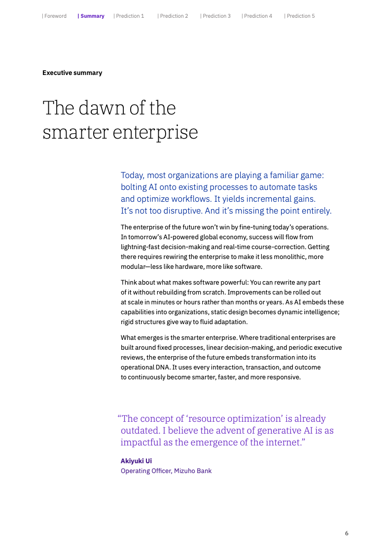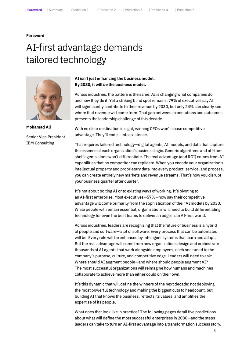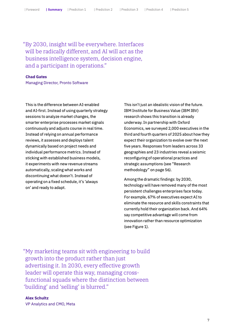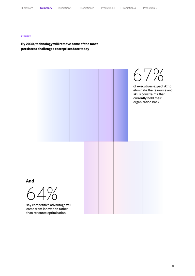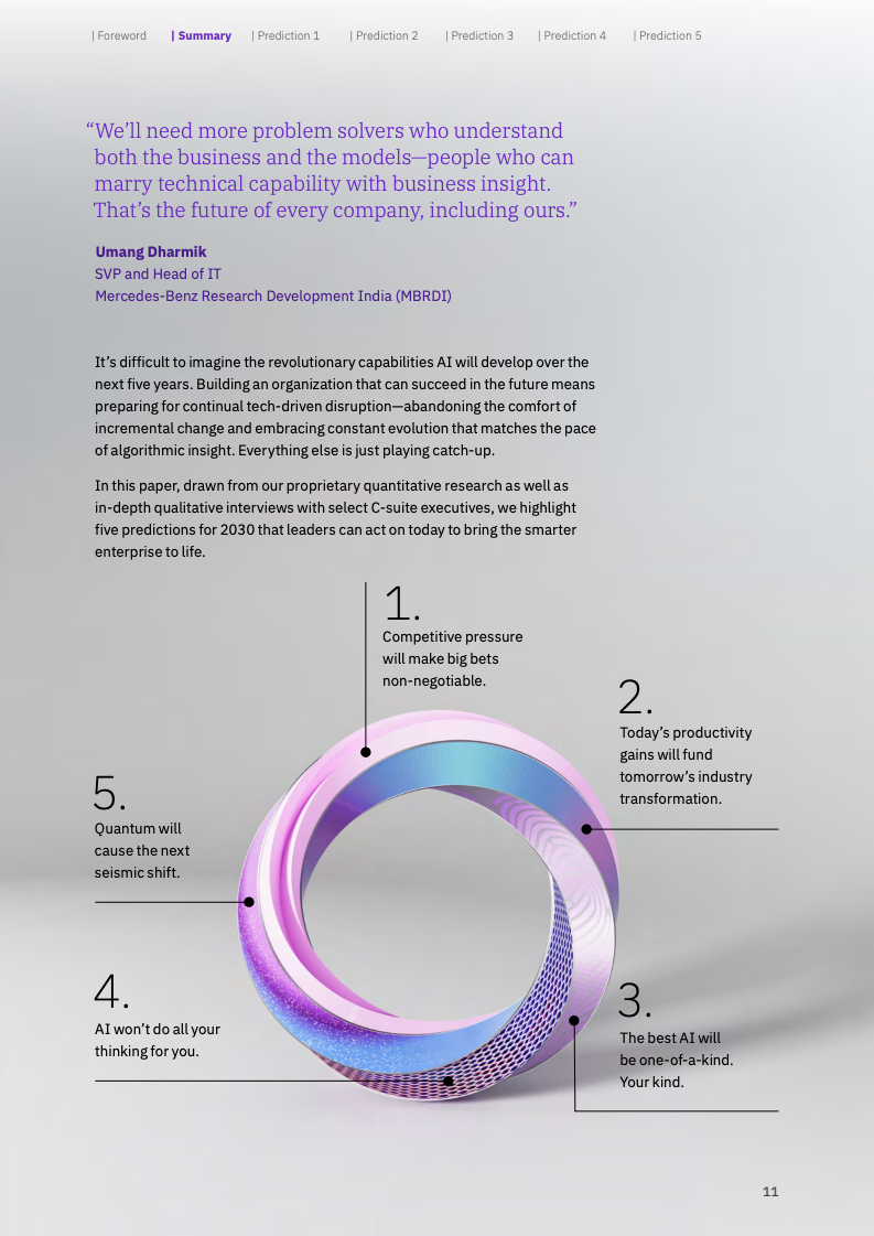 综合来看,2030年的领先企业将呈现出清晰趋势:以AI驱动的生产率释放为资本来源,通过定制化技术体系不断试探新市场,并以高速决策和动态组织应对不确定性。真正的分水岭不在于是否采用AI,而在于企业能否将技术、数据与自身独特业务逻辑持续编码进组织运作之中。未来十年,创新将不再是阶段性项目,而是一种被写入企业“操作系统”的常态能力。