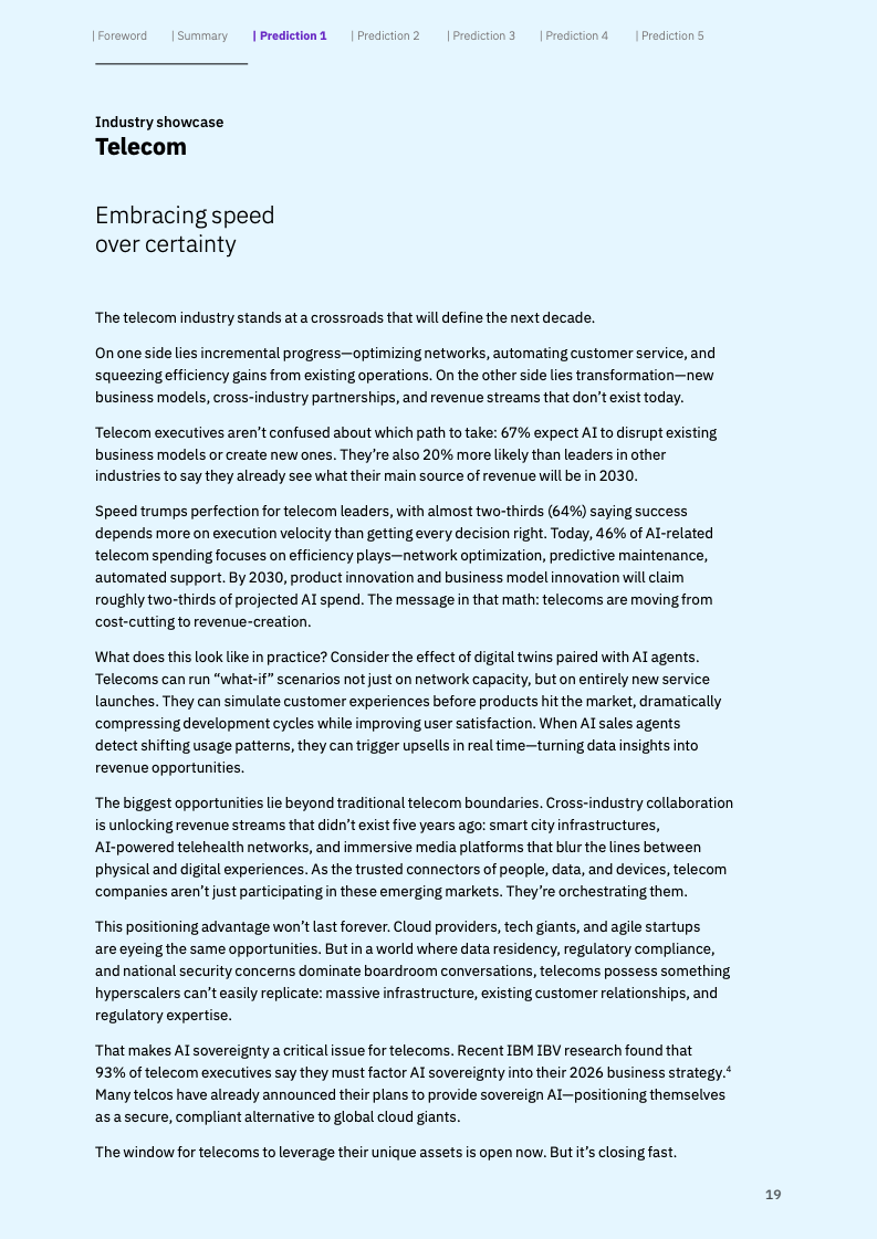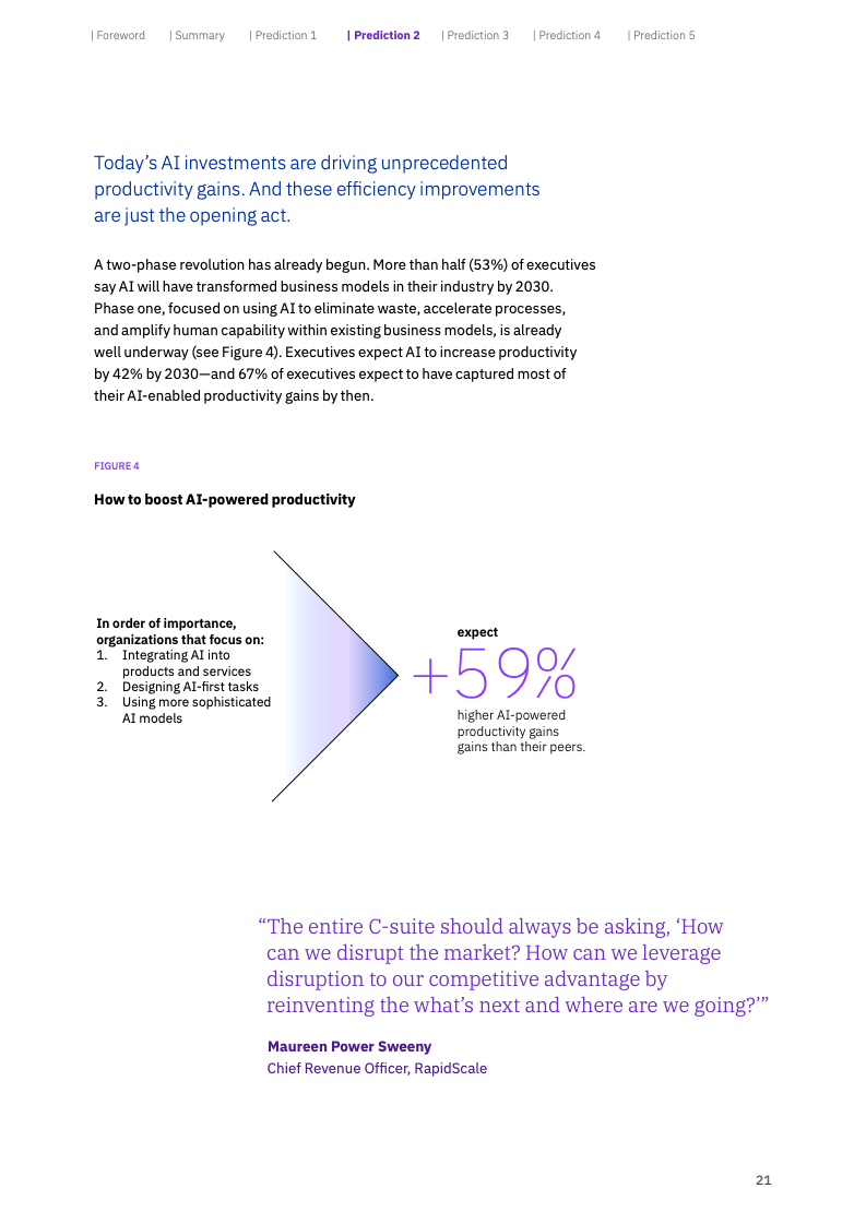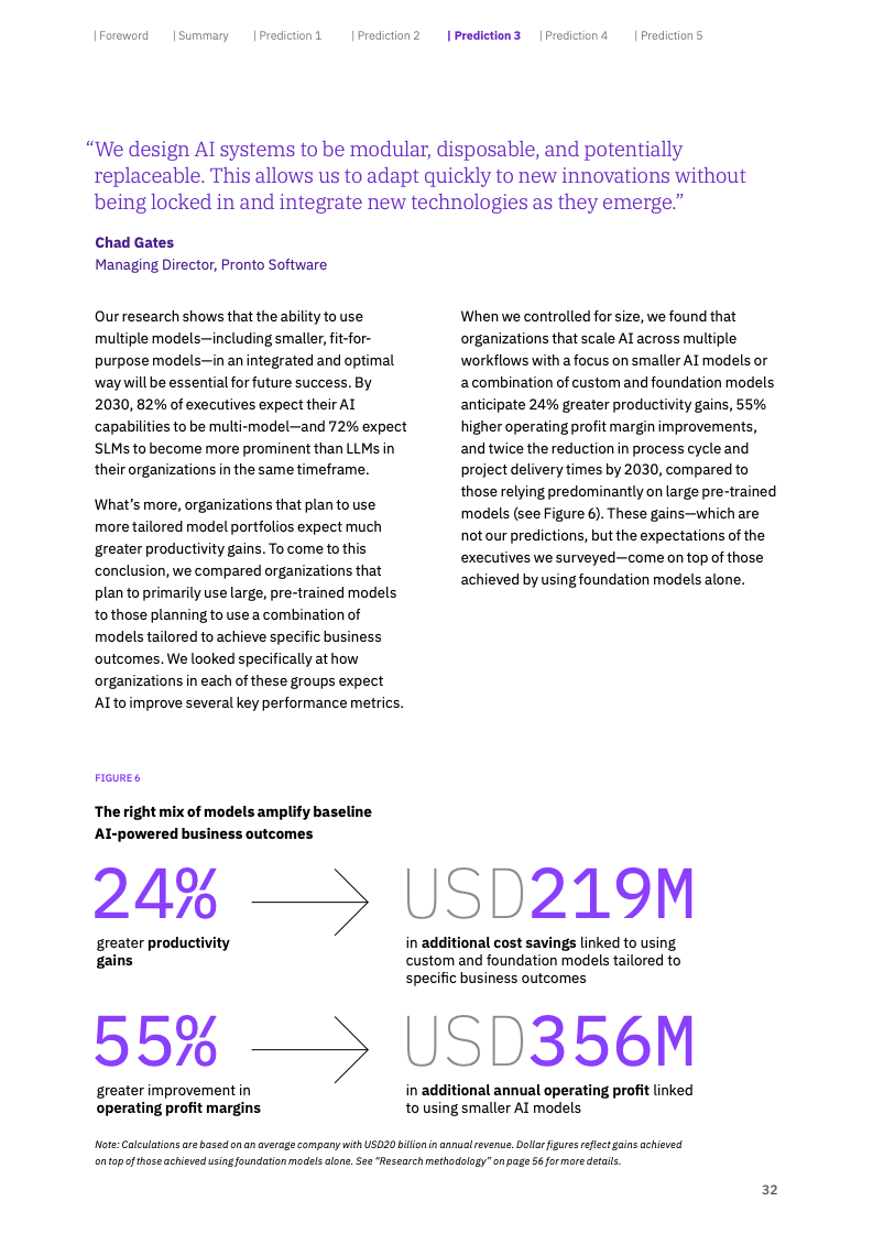 在技术路径上,差异化不再来自“更大的模型”,而来自“更合适的组合”。82%的高管预计2030年前企业将采用多模型AI架构,72%认为小模型的重要性将超过大模型。与主要依赖通用大模型的企业相比,采用定制化模型组合的企业,预计可实现24%更高的生产率提升、55%更高的营业利润率改善,并将流程和项目周期缩短一倍。数据、模型与业务逻辑的深度耦合,正成为新的护城河。