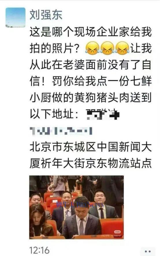 刘强东自己也发文自嘲合照:
