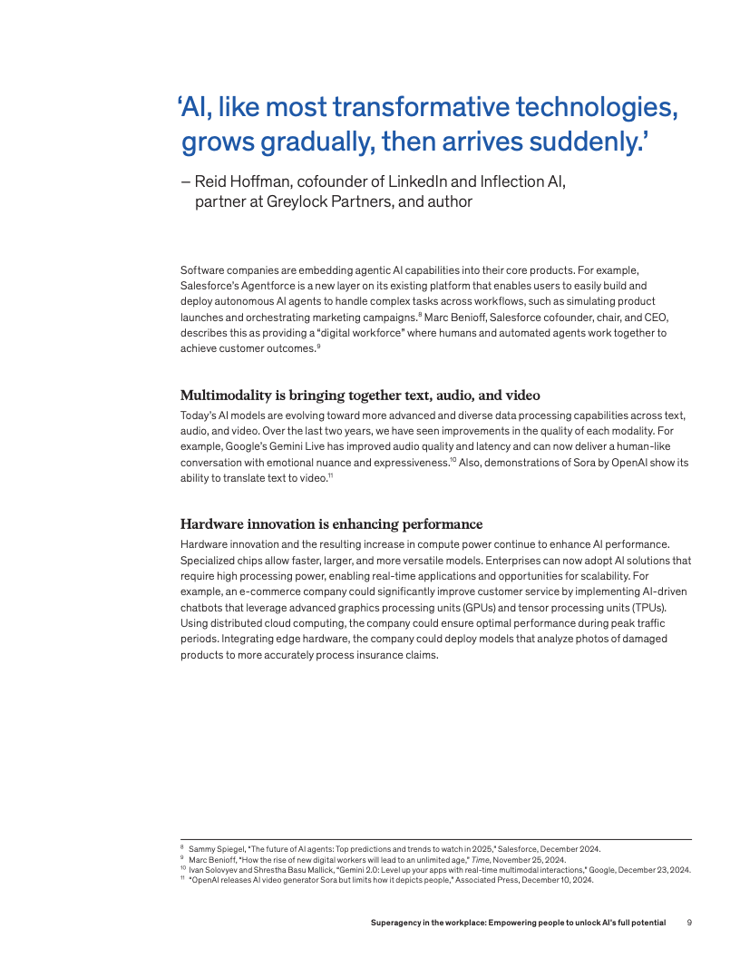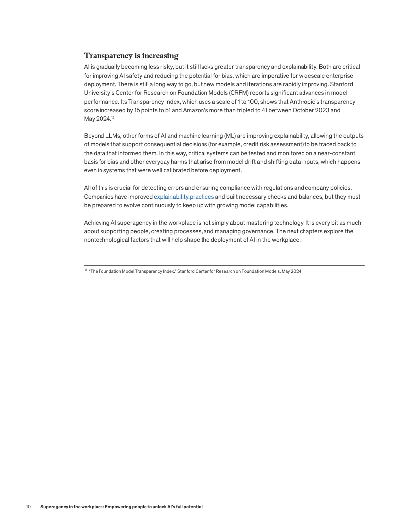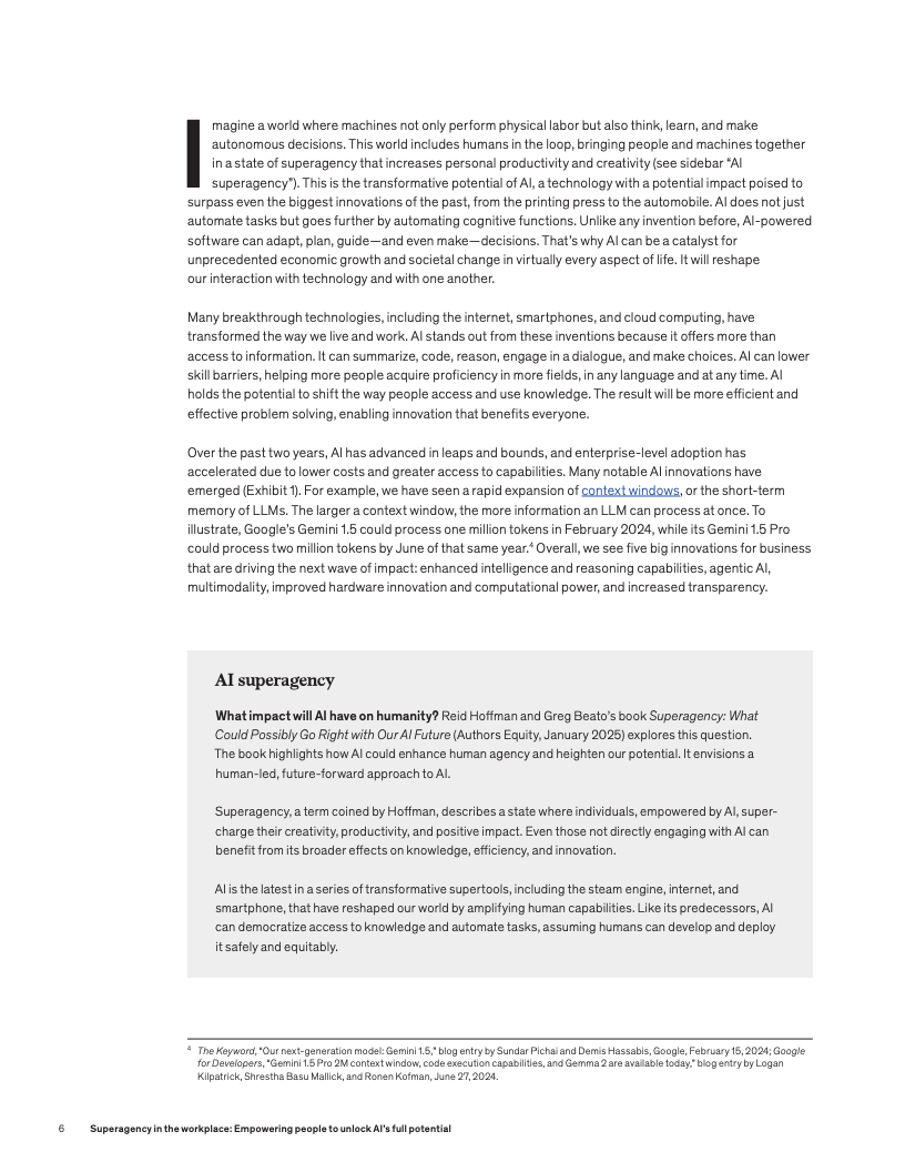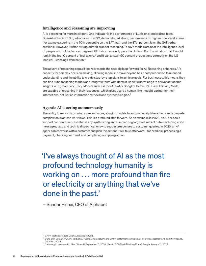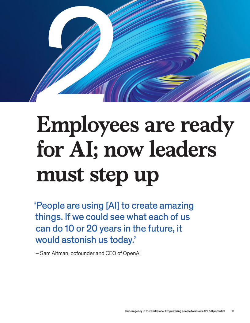 展望未来,人工智能在职场的应用正在由单一任务自动化向更深层次的认知智能、自动化决策及多模态交互进化。领导养成“超级智能”理念,即通过AI增强员工的创造力与生产力,将重塑企业运作模式和竞争格局。员工准备充分,技术飞速进步,领导者拥有充分空间推动变革。唯有勇于设定大胆目标,统筹速度与安全,强化人才与技术协同,企业才能在这场新工业革命中赢得先机,释放人工智能在职场的全部潜力。