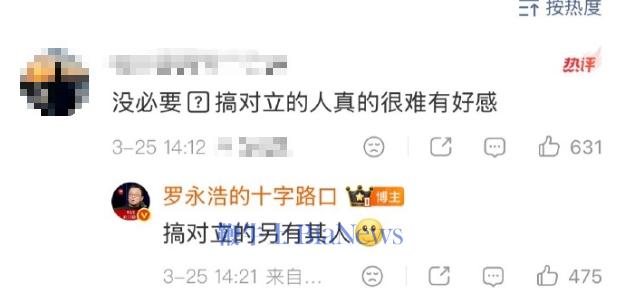 没必要,搞对立的人真的很难有好感。”对此罗永浩回复称:“搞对立的另有其人。”