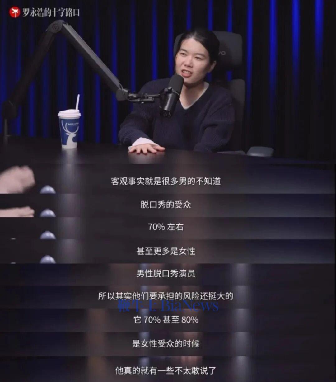 70%甚至80%是女性受众的时候他真的就有一些不太敢说了。”