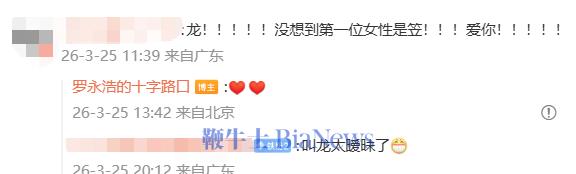 有网友表示惊喜,并且评论称:“没想到第一位女性是笠(杨笠)!。”