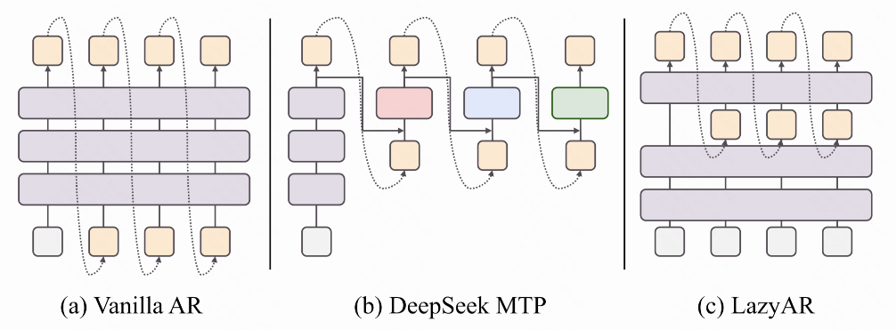 广告系统需要在极高 QPS 和极低延迟下同时生成大量高质量候选,这与 LLM 对话场景的解码需求存在本质差异。GR4AD 提出 LazyAR 懒惰解码器,将前序 Token 的依赖"延迟"注入,使多路 Beam 的前段计算得以并行共享,在几乎不损失推荐质量的前提下将推理吞吐量翻倍。结合动态 Beam 服务(DBS)、KV Cache 共享、FP8 低精度推理等工程优化,最终实现 <100ms 延迟、500+ QPS/L20 GPU 的工业级服务能力。