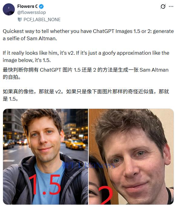 判断你用的是ChatGPT-Images-1.5还是2的最快方法:生成一张Sam Altman的自拍。如果看起来真的很像他,那就是2;如果只是像下面这张图一样粗略的近似,那就是1.5。