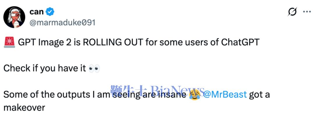 GPT-Image-2 已经开始向部分 ChatGPT 用户进行灰度开放。