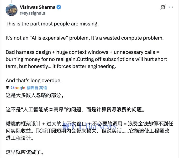 快把烧token变成某种爱好和社交展示资本的人们吐槽吐槽Anthropic 就罢了,对于各类Harness产品以及模型厂商们来说,这事真正的信号意义其实很强,如果还是想着趁乱靠免费量大管饱去接住一波流量用户,就太不合时宜了。