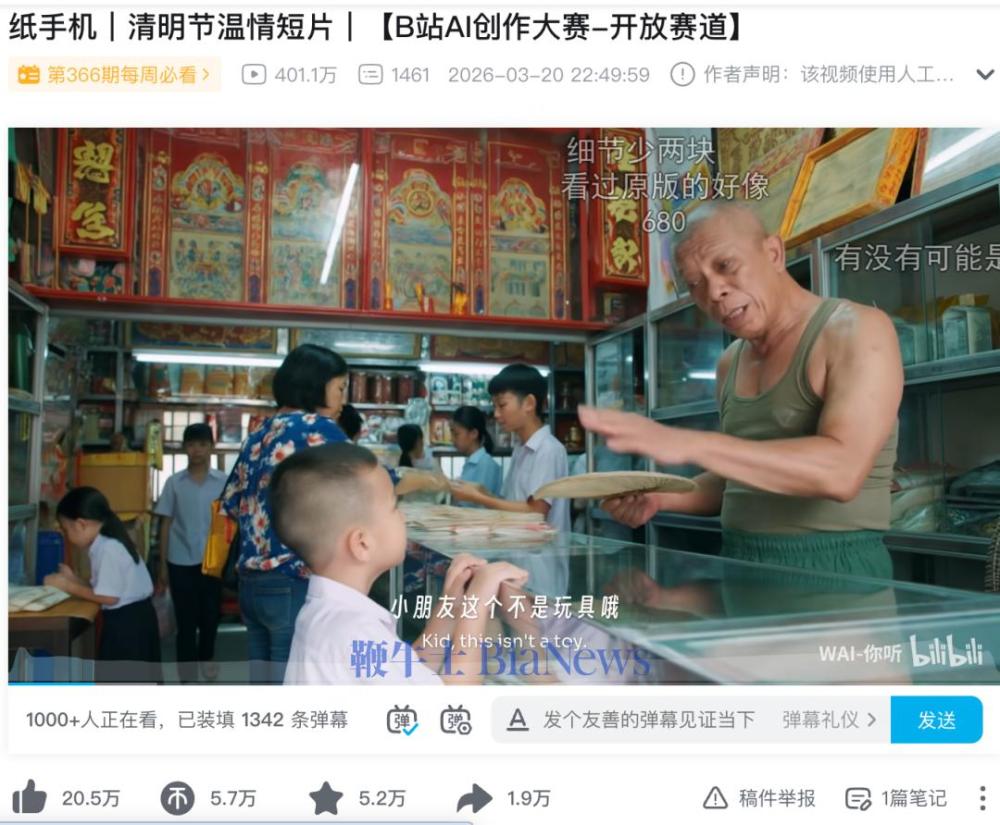 《纸手机》并不诞生于可灵为主导的创作项目,而是B站发起的AI创作大赛,