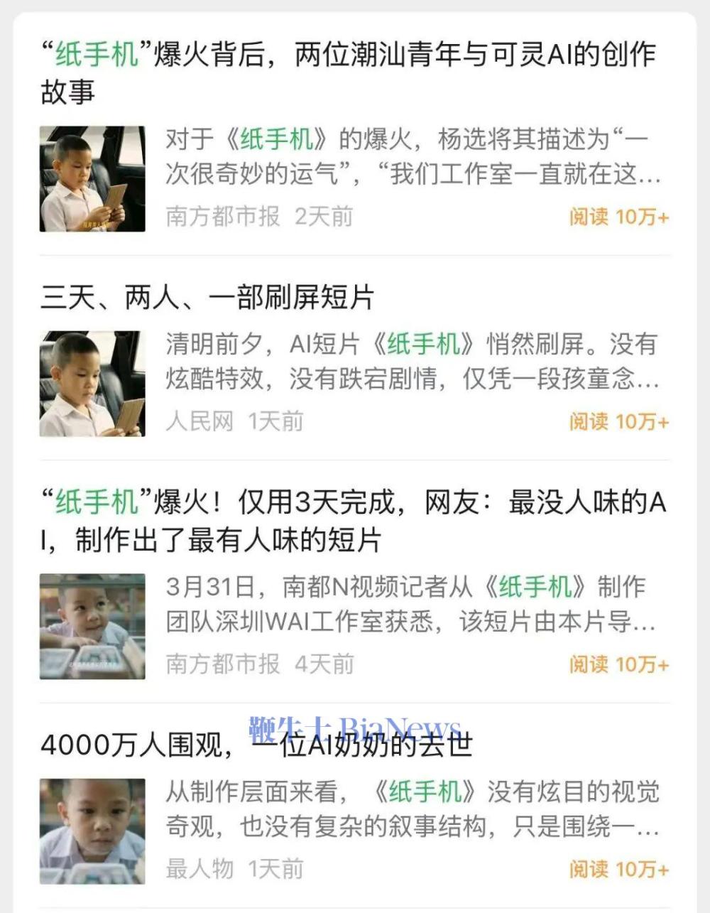 《纸手机》这部短片,在清明节这个时点,有点小火。