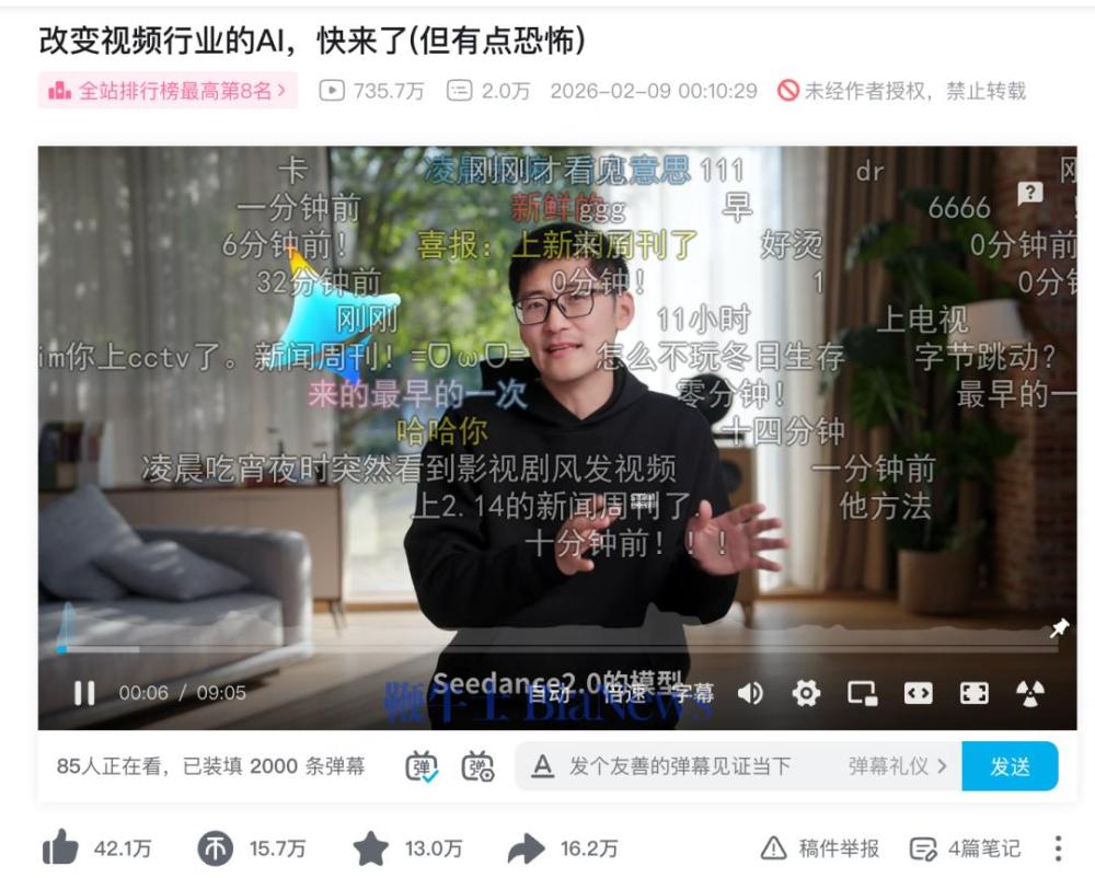“传统视频行业距离彻底被AI海啸冲走进入倒计时。