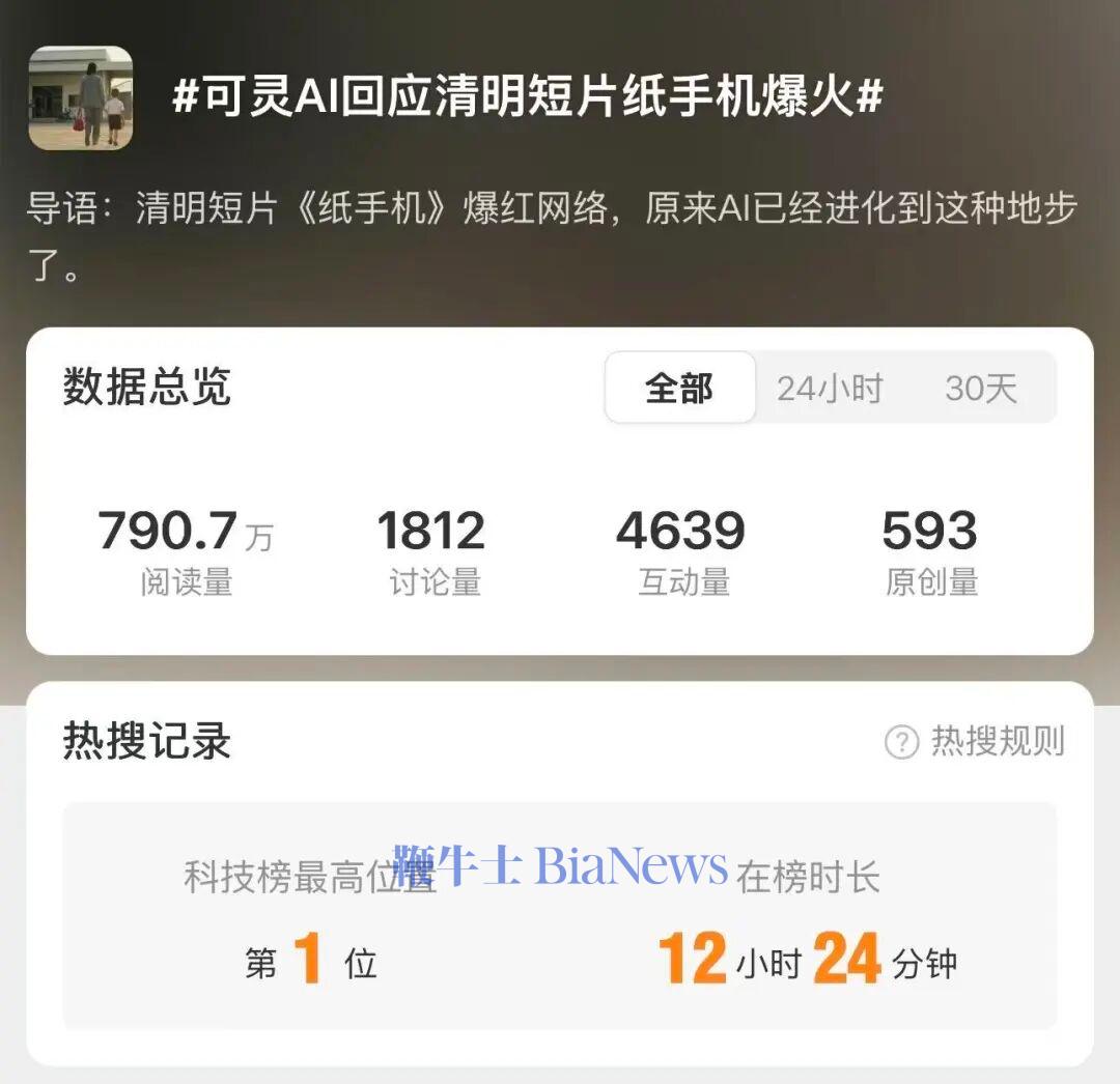 央媒转发的清明节AI短片,为何没烧火背后的可灵?