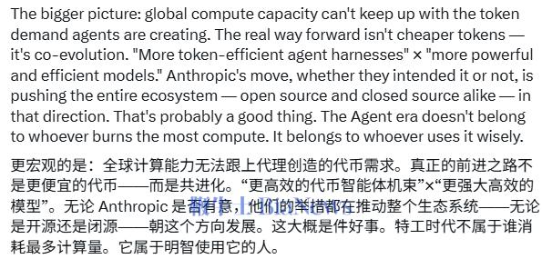 "Anthropic的这一步,不管他们是否有意为之,正在推动整个生态——开源和闭源——朝着这个方向走。这大概是一件好事。